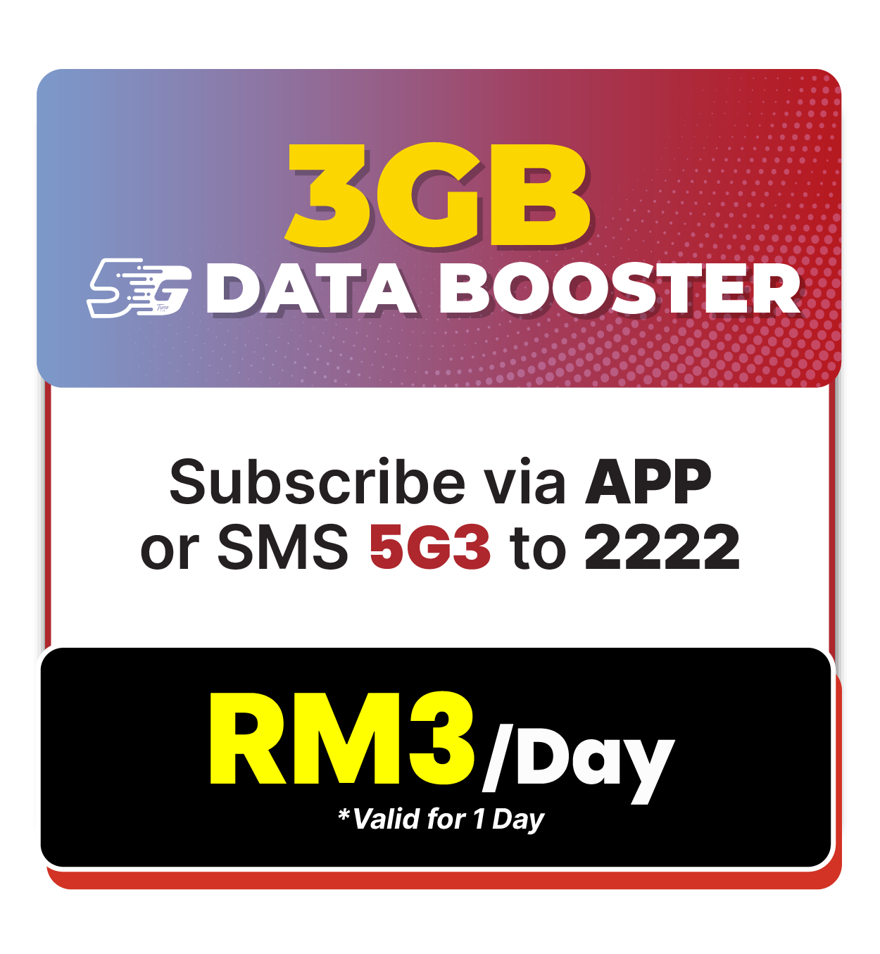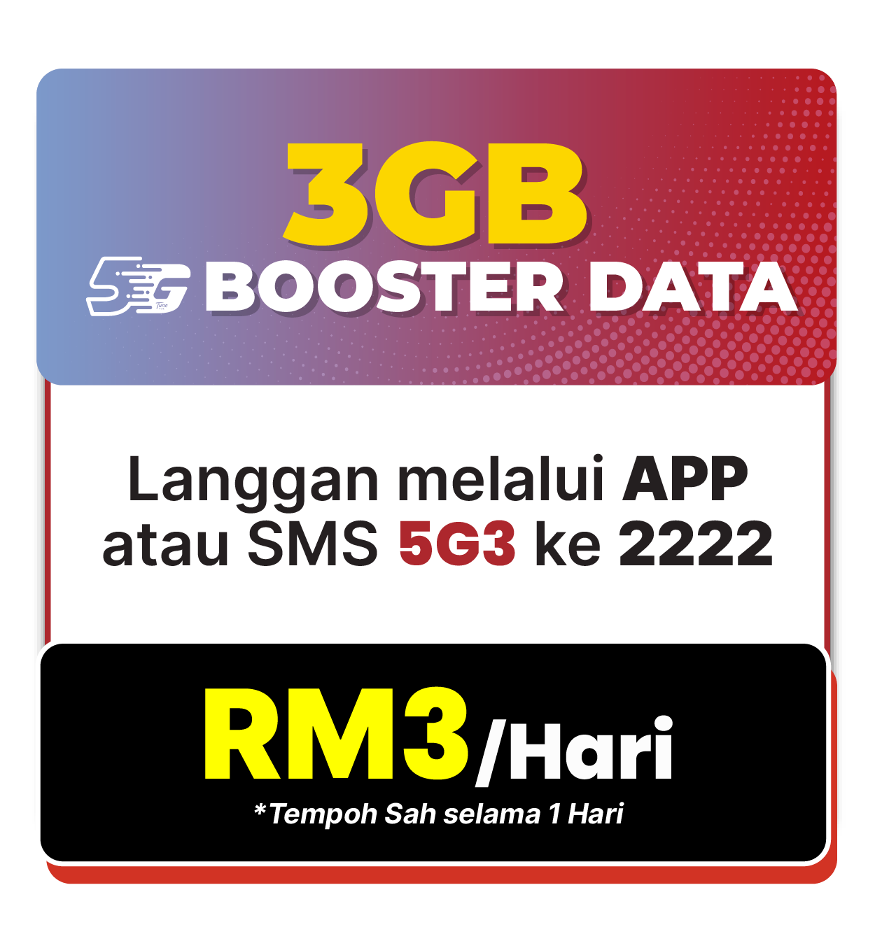 - i. EB5G3 shall be priced at RM3.00 and include a 3GB 5G hotspotable Internet and 5G network services.