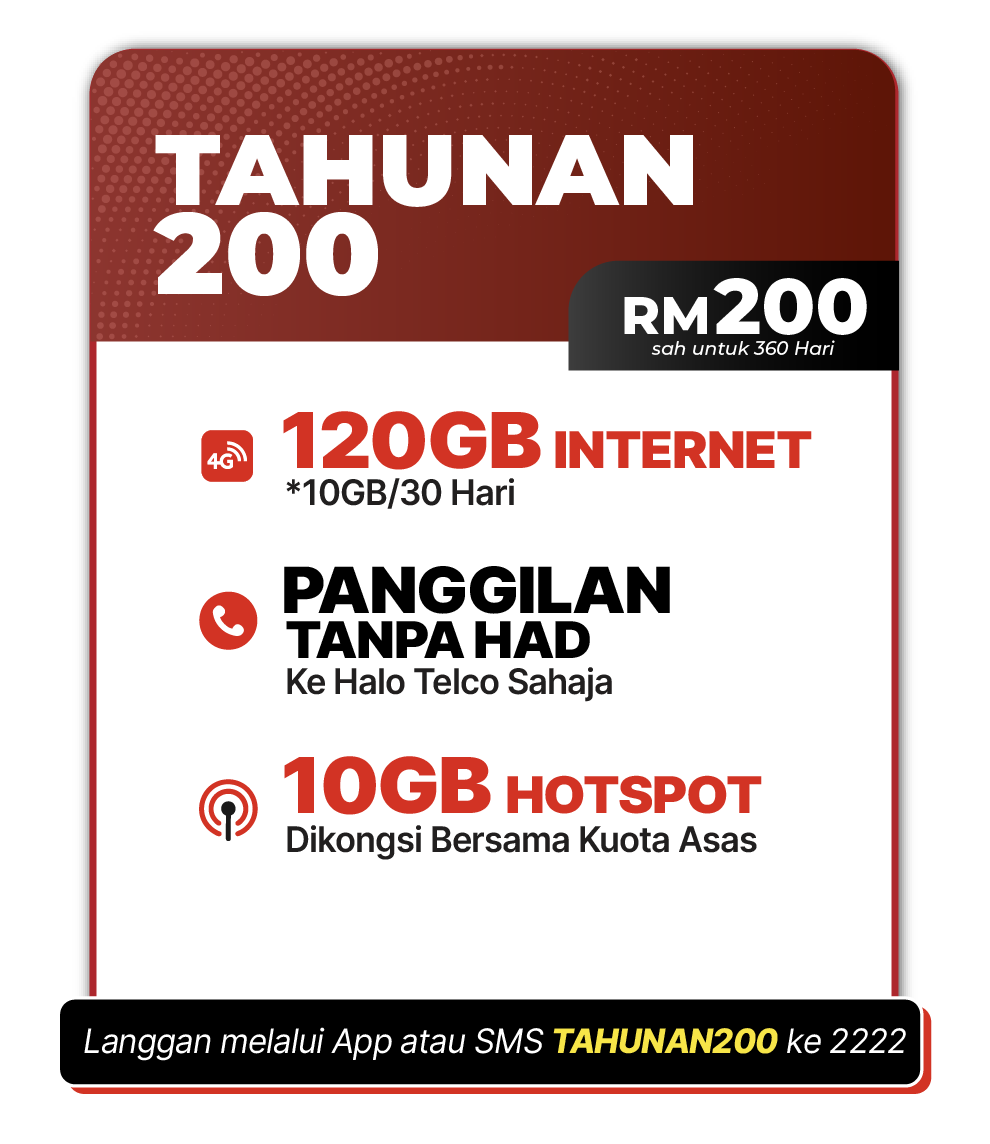 - ii.UNLCalls shall only be automatically renewed or repurchased provided there is an active Tahunan200 plan and that there is sufficient credit balance in the customer’s Halo Telco mobile number, or any other registered forms of payment.