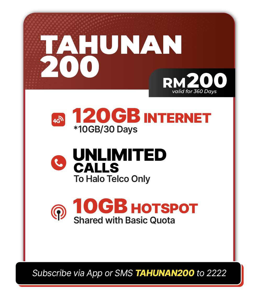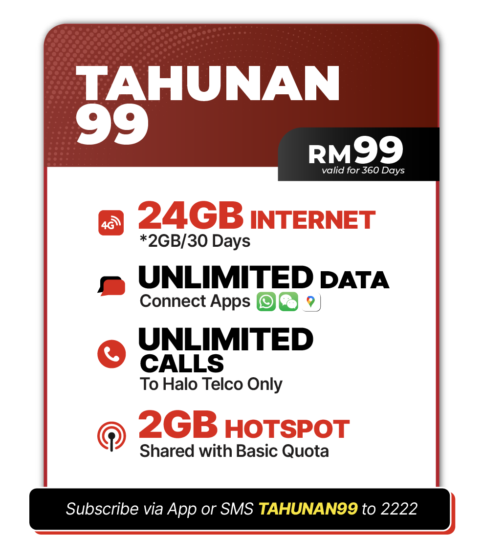 - All queries pertaining to the abovementioned plans shall be directed to Halo Telco’s Customer Care by Live Chat, calling (+603-58703107) (non-Halo Telco or overseas) from 8am to 9pm daily.